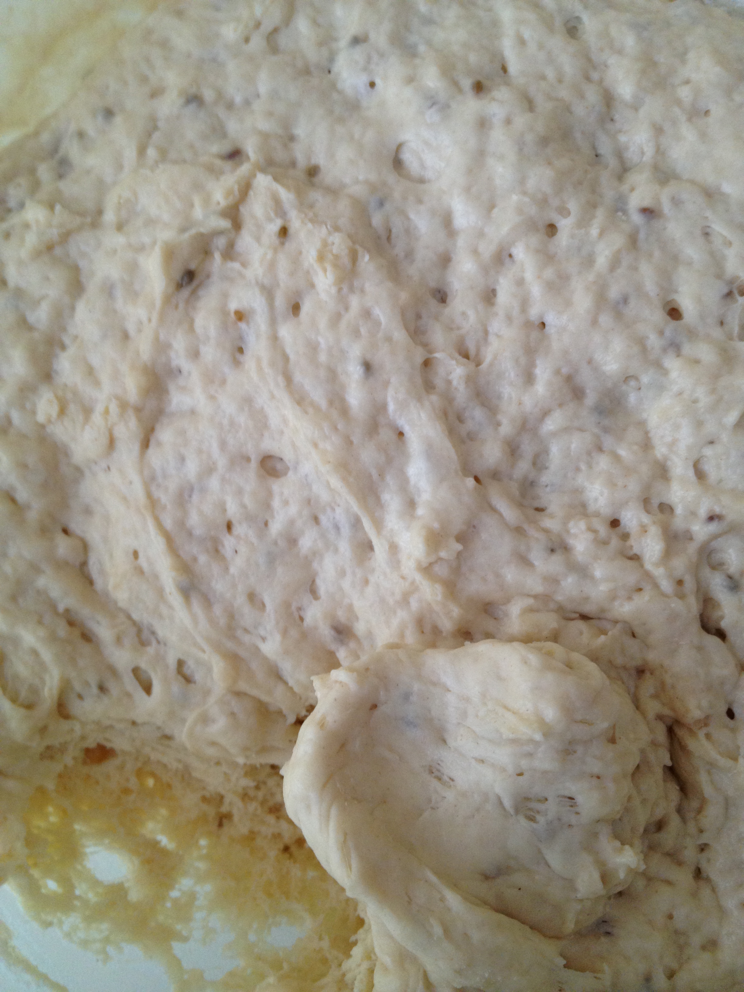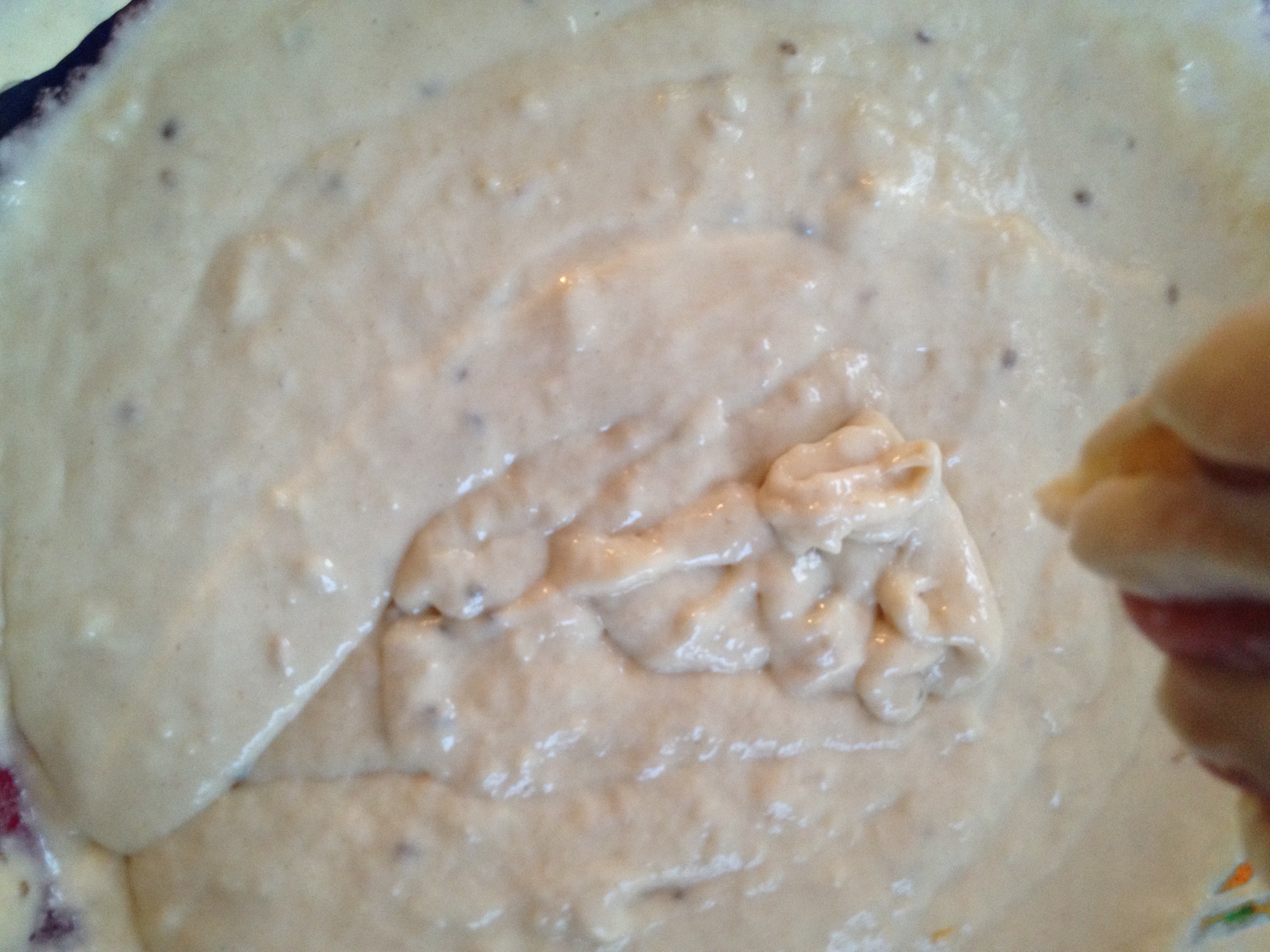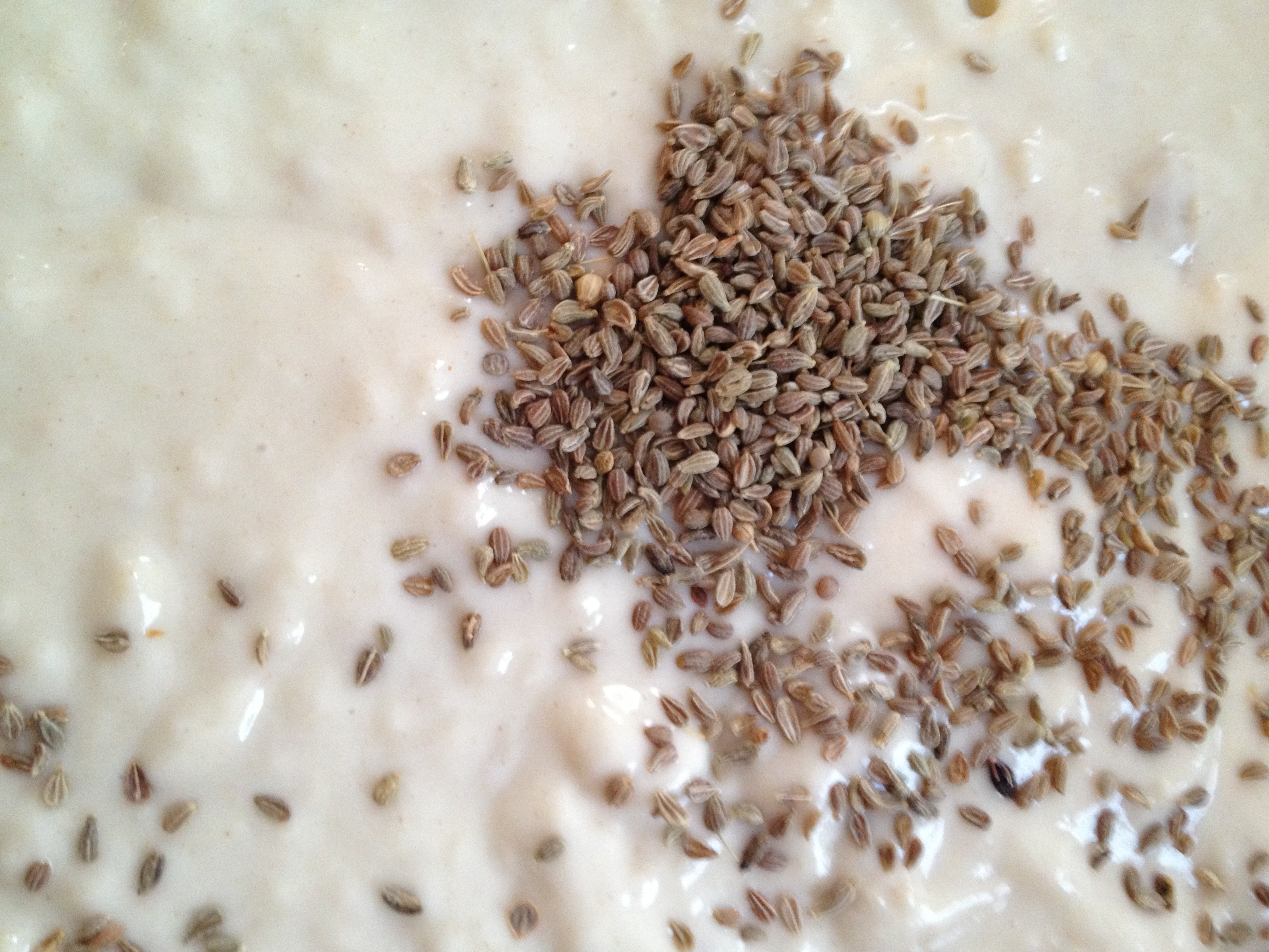 Separate the anise from the liquid and add this infusion to the dough. The dough needs to change from dry to almost liquid. Add the anise seed at this point and mix.