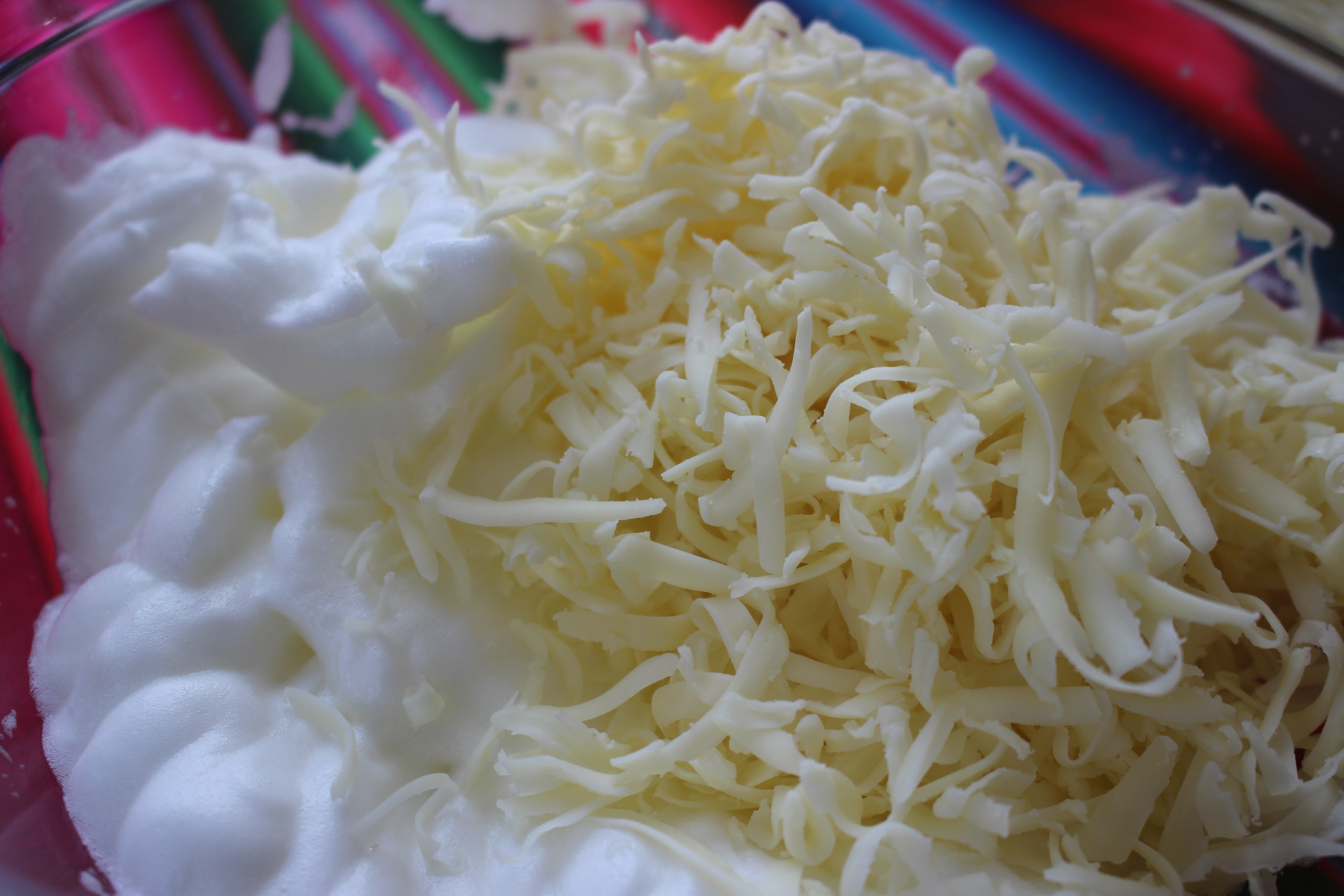 Add the cheese to this mix just before you are making the empanadas, otherwise the egg whites will lose their foamy consistency.
