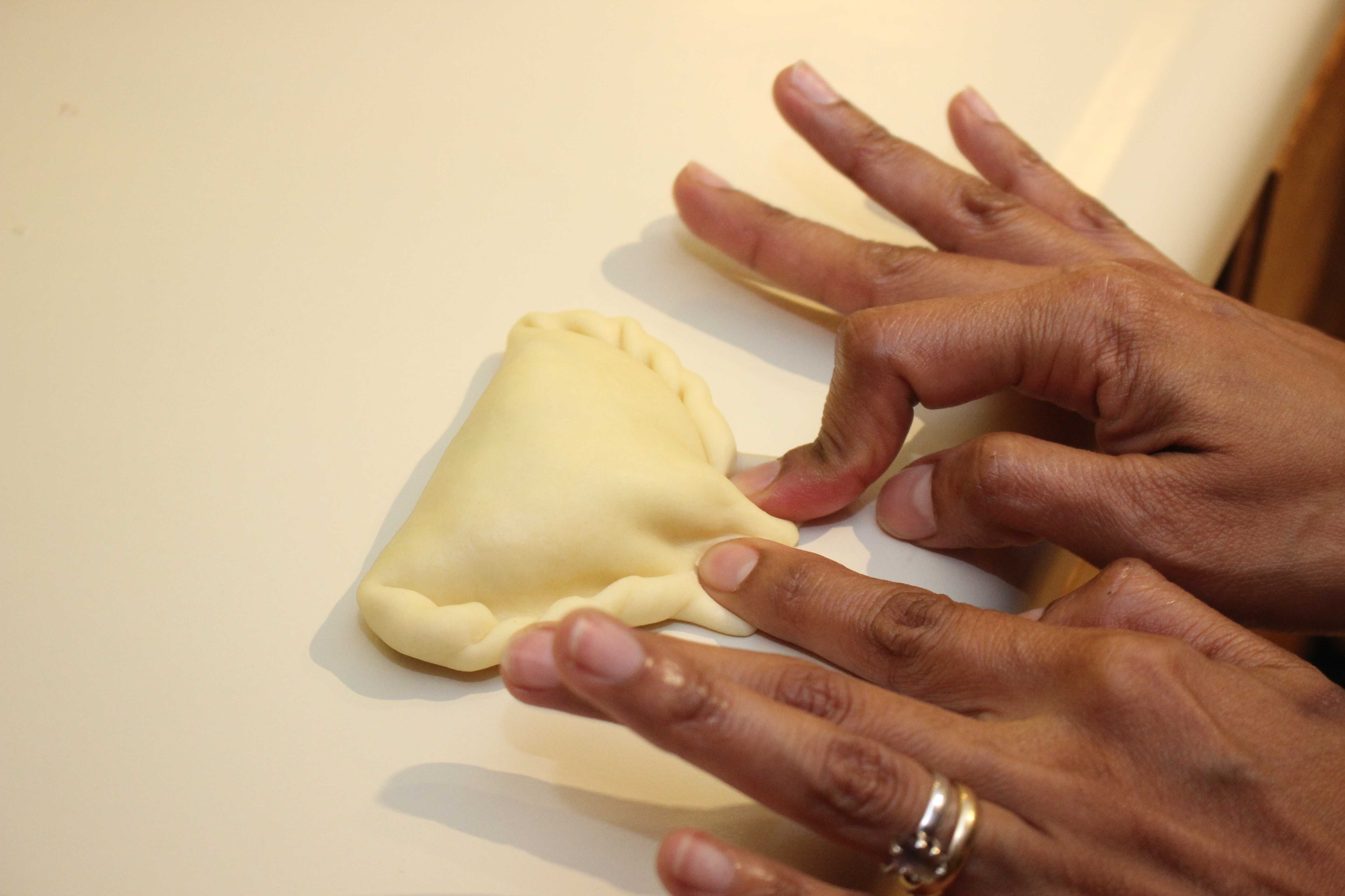 Whisk the other egg and, using a brush, paint each empanada with the whisked egg. Make sure you brush the entire empanada.