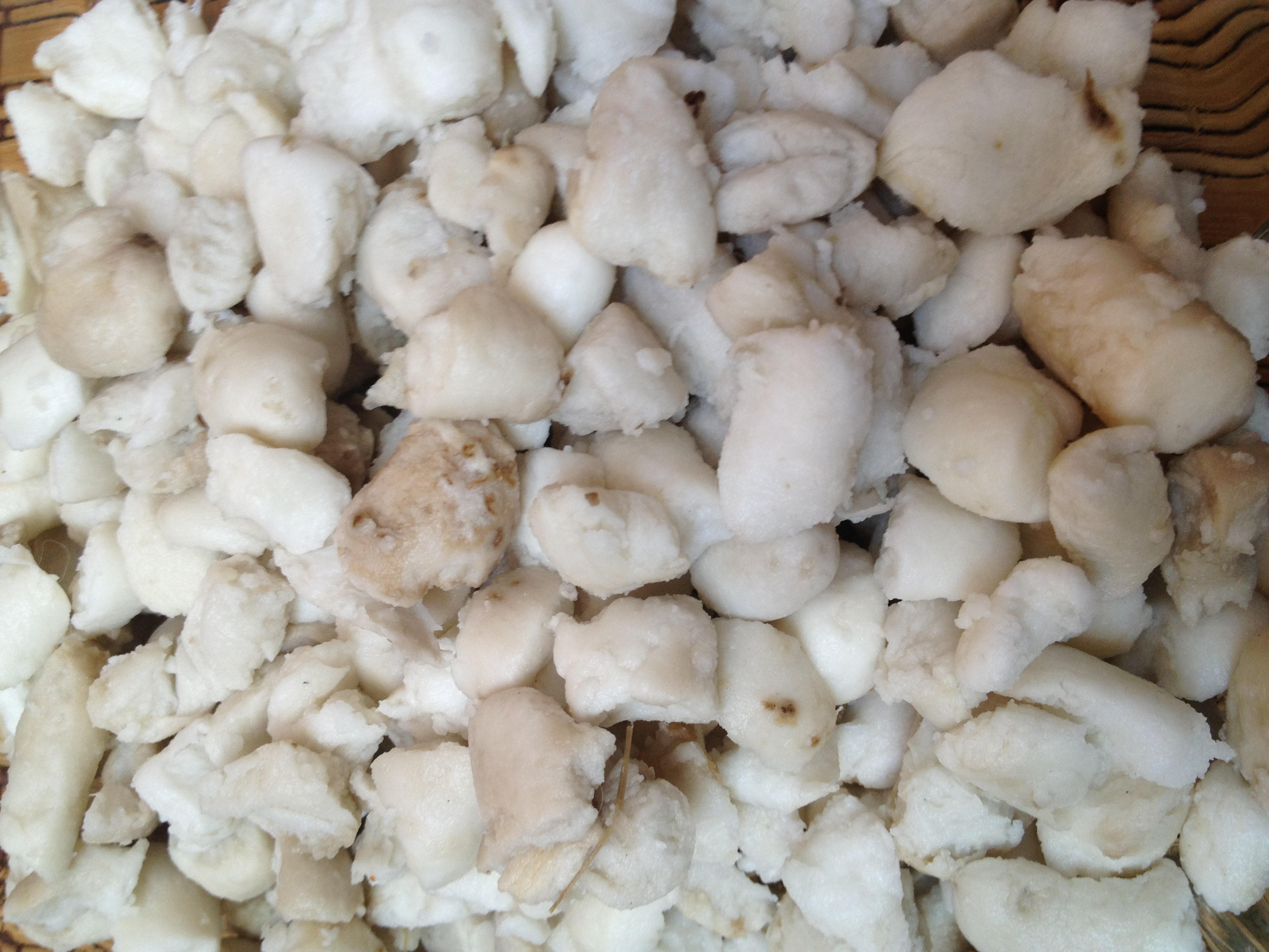 If you find Chuño, it will be dry. You need to let it soak all night and next day, break it into pieces with your hands. Once that the chuño is in small pieces. Wash it the times in water to take out the spicey flavor.