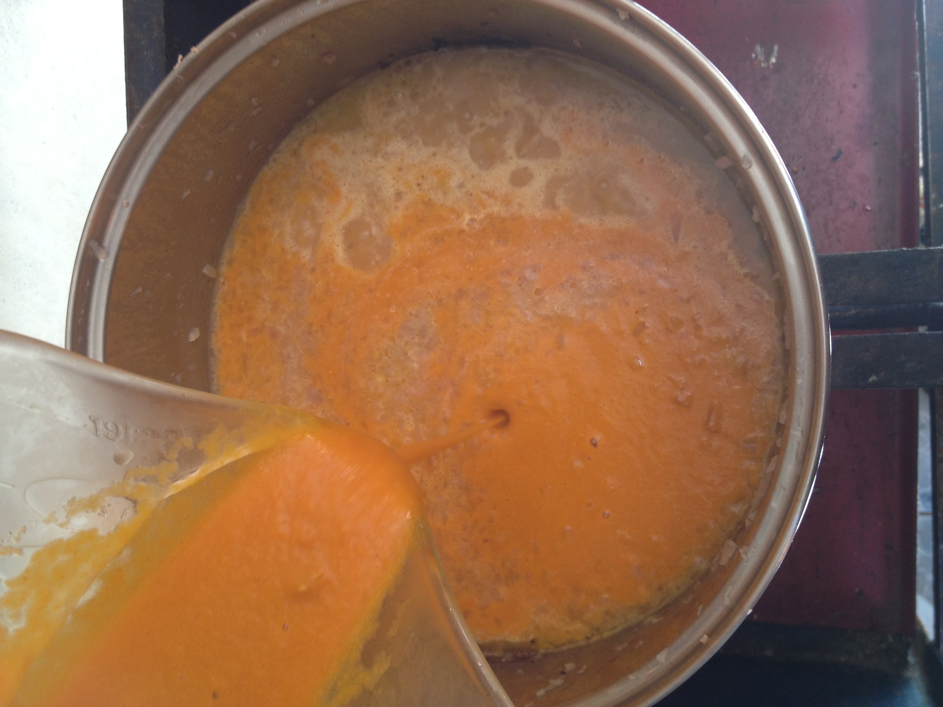 Once that is dry, add 4 cups of chicken broth or just water. Let it cook for about 10 min and add the yellow pepper sauce.