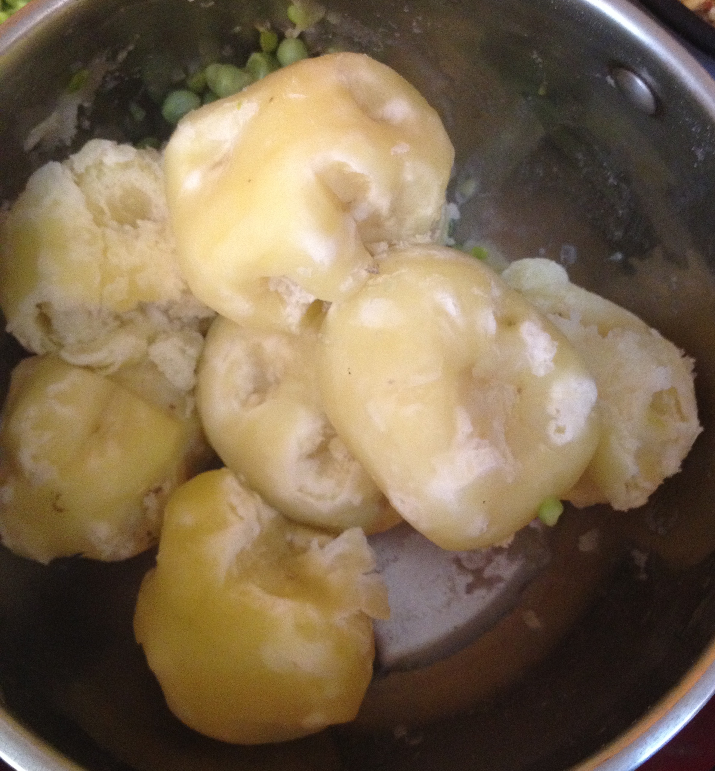 Boil the potatoes with a little bit of salt until they are soft. Set aside.