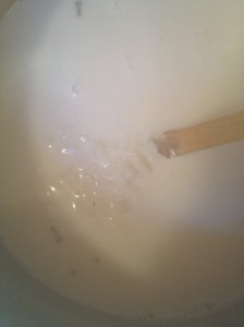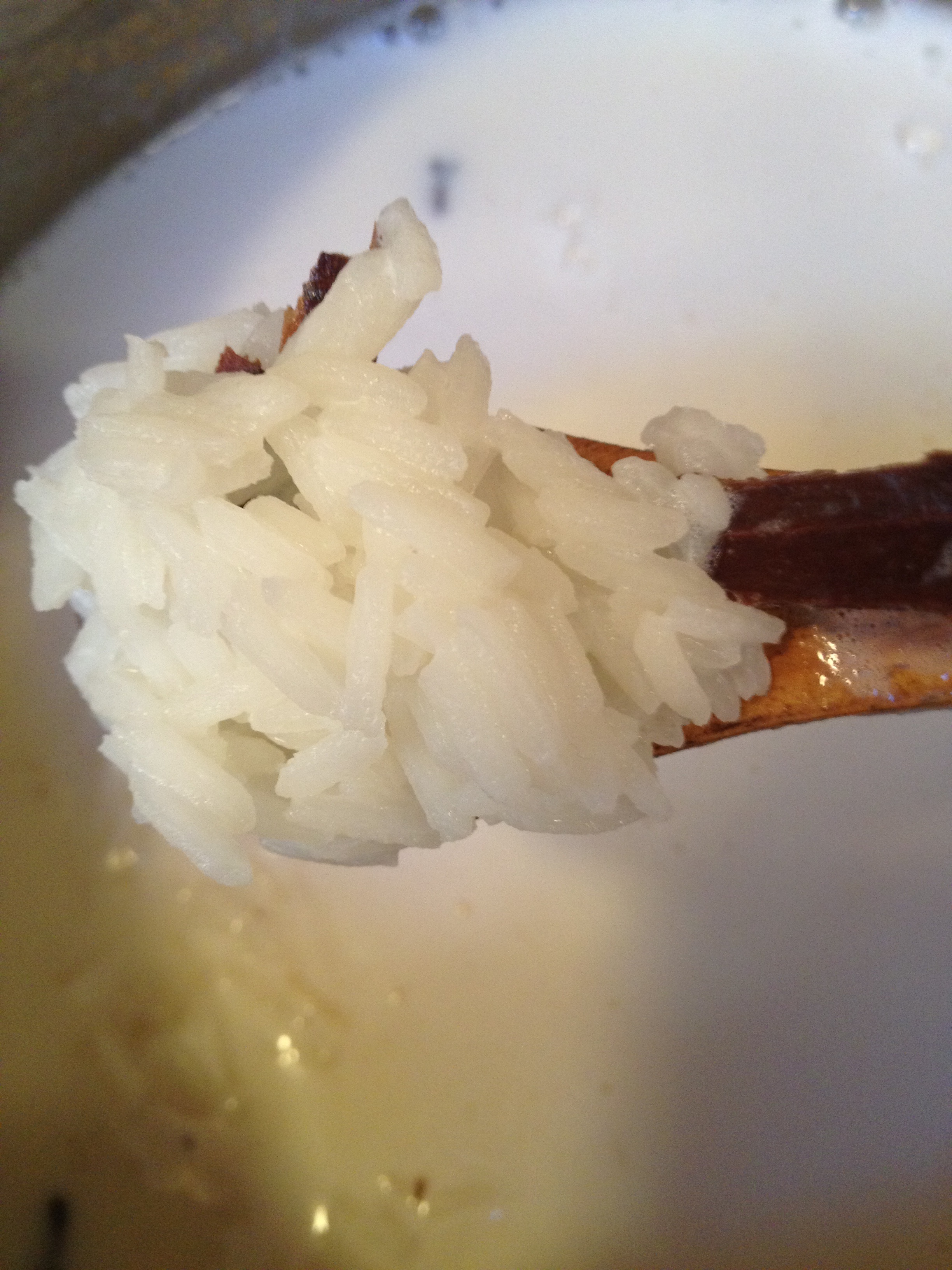 You will see that the rice has absorbed most of the water. Add the milk and sugar and let it cook for another 15 min.