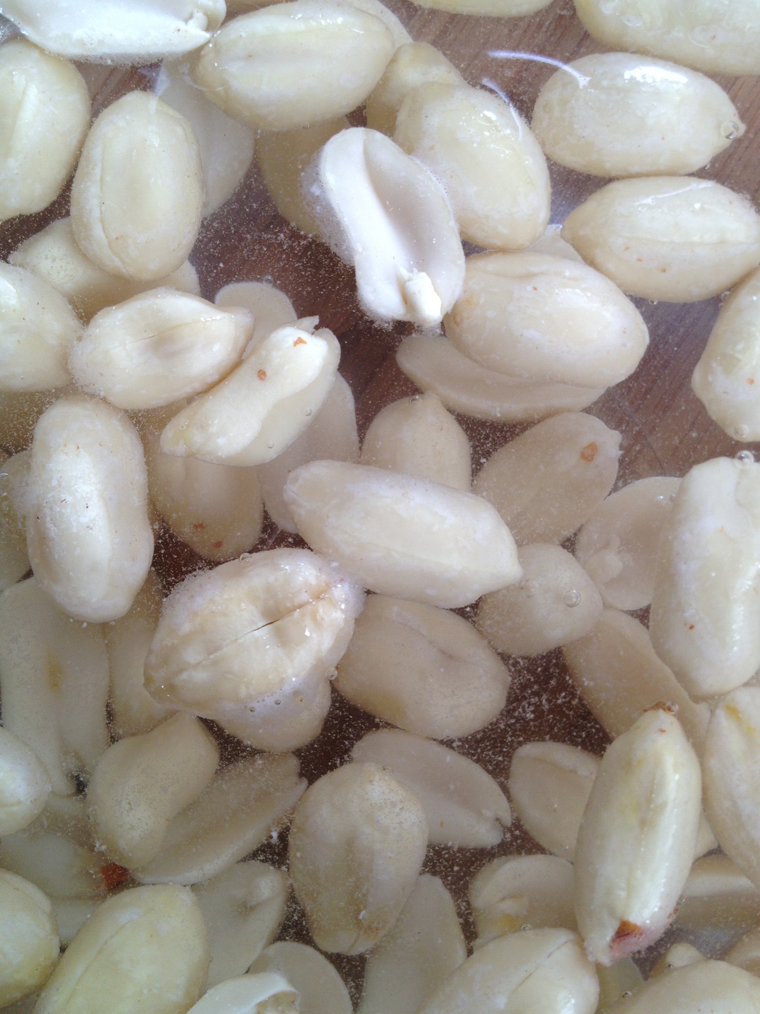 Soak the peanuts in a cup of hot water and let it soak for 15 min.