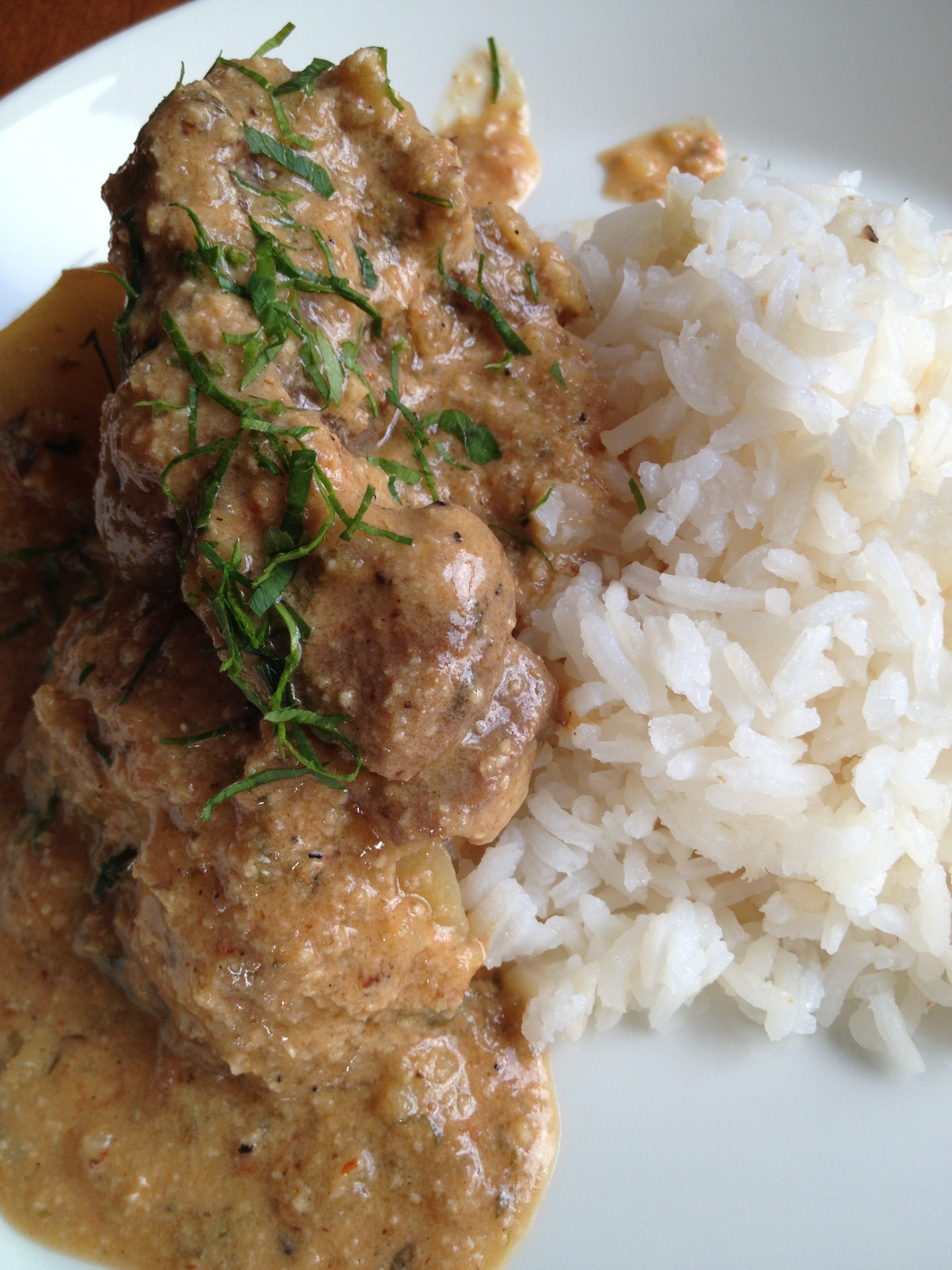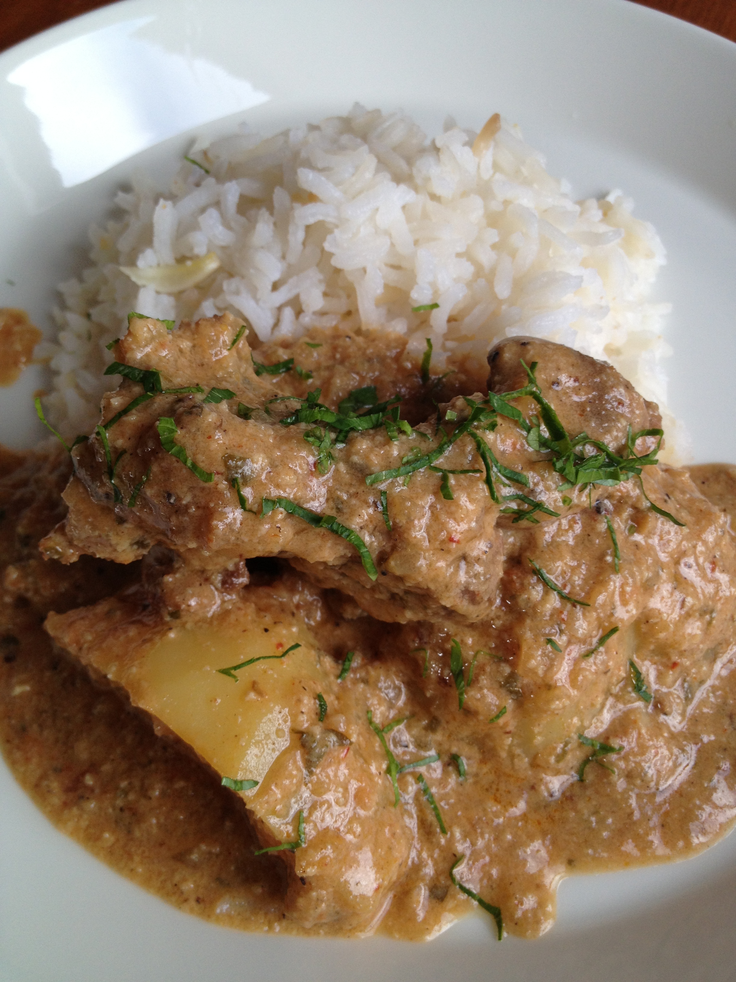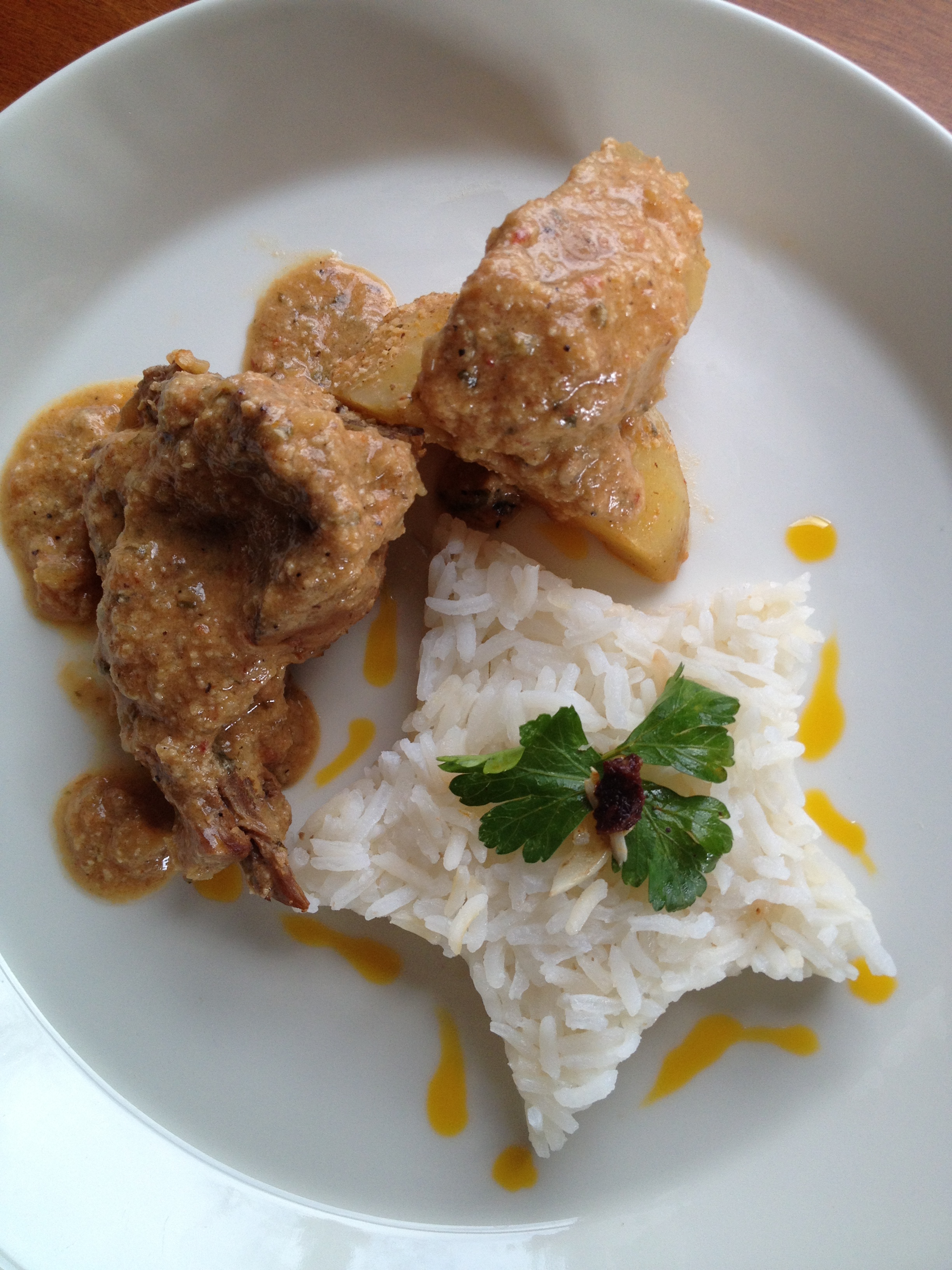 While the lamb is being cooked, prepare the peanut sauce, potatoes and rice.