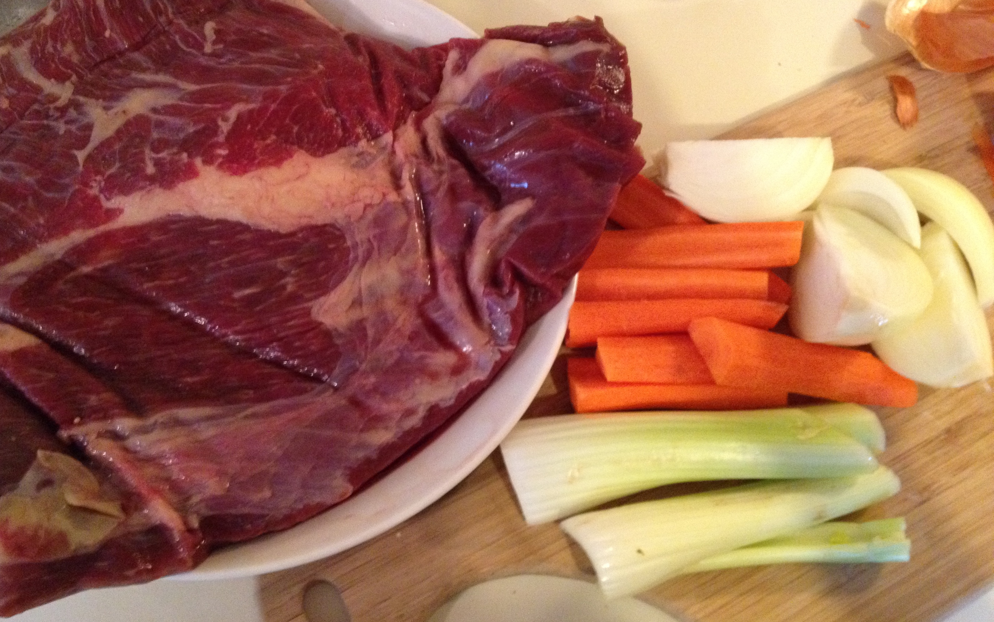 2 1/2 to 3 pounds Briscket (buy from a farmer because it tastes better and cooks faster)