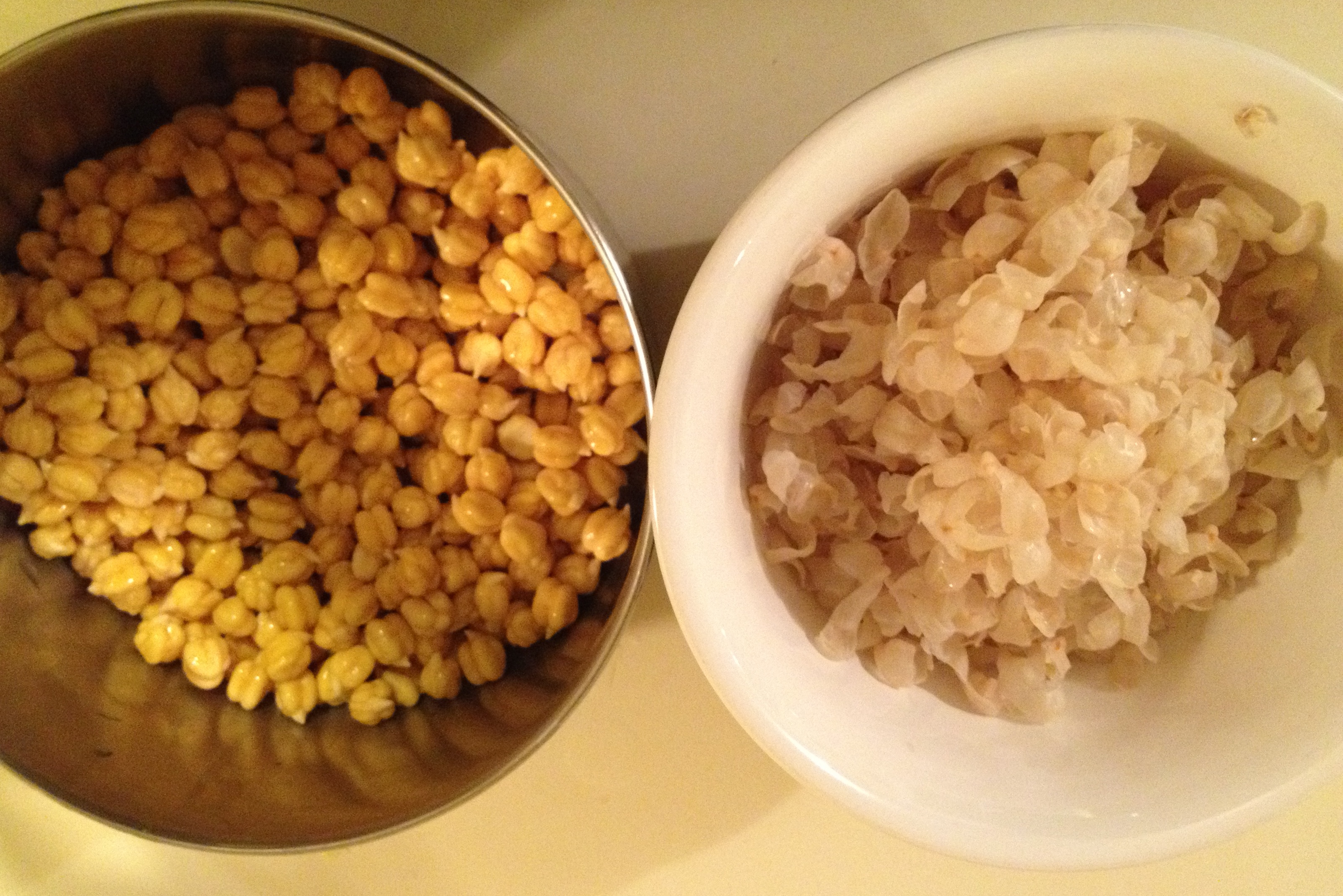 Once the skin is starting to get loose, peel the chickepeas. This take some time so I recommend doing it a day ahead.