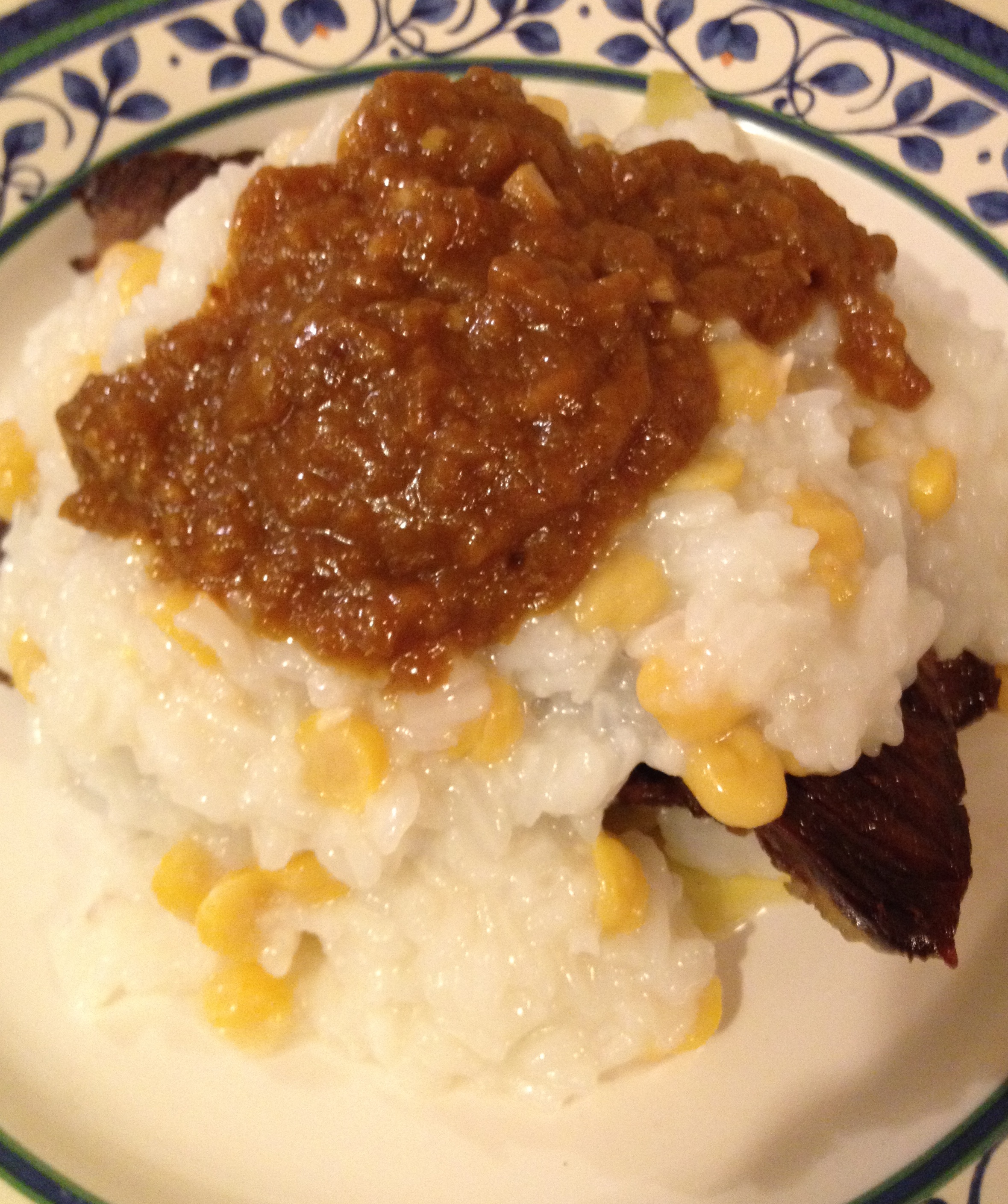 You can also switch the way you present this dish. In Bolivia this was my favorite way my mom would put the rice and the sauce on top and hide the meat, cabbage and potaoes under it. I must confess I used to hate boiled cabbage when I was a child. So this was her way to make us finish the entire plate.