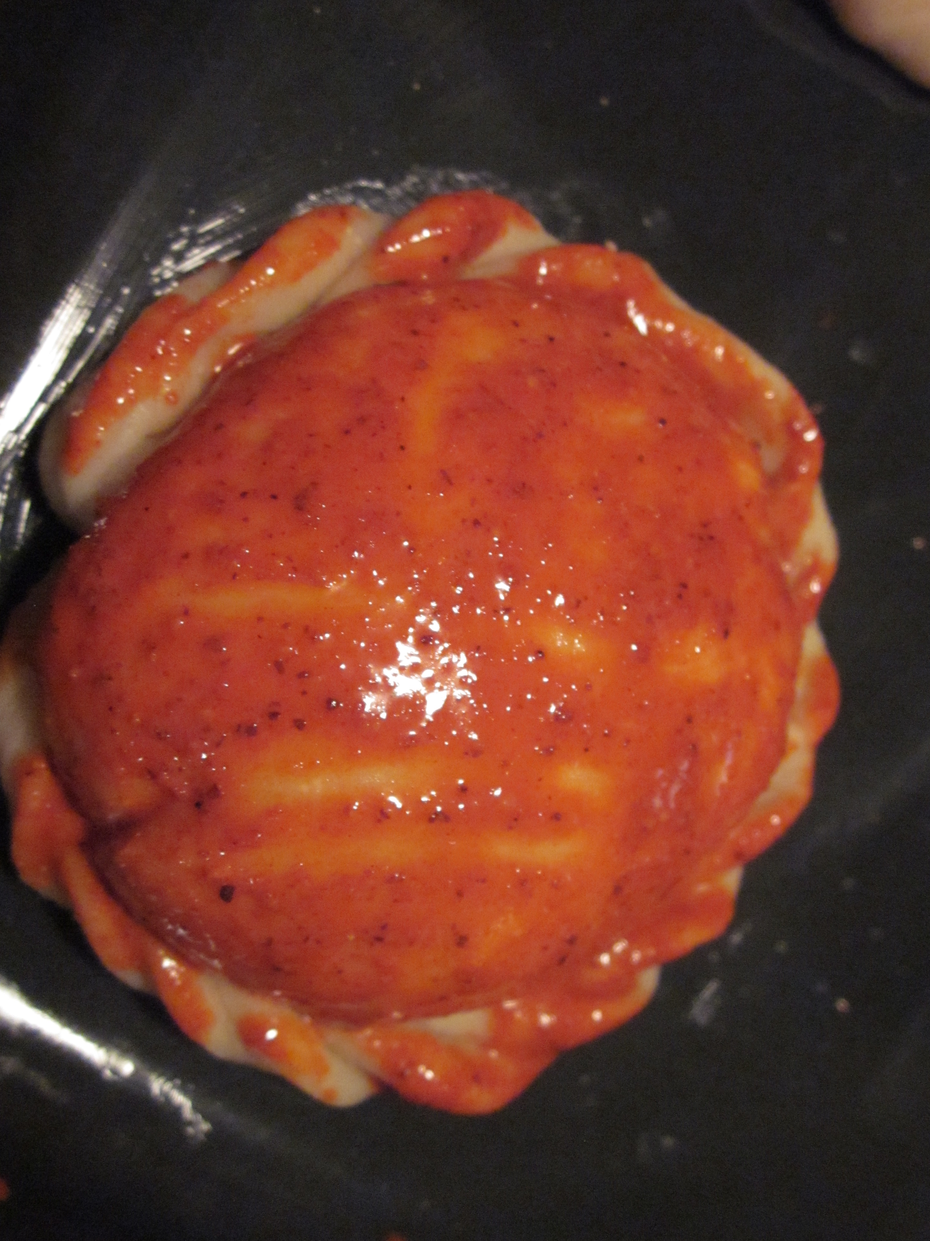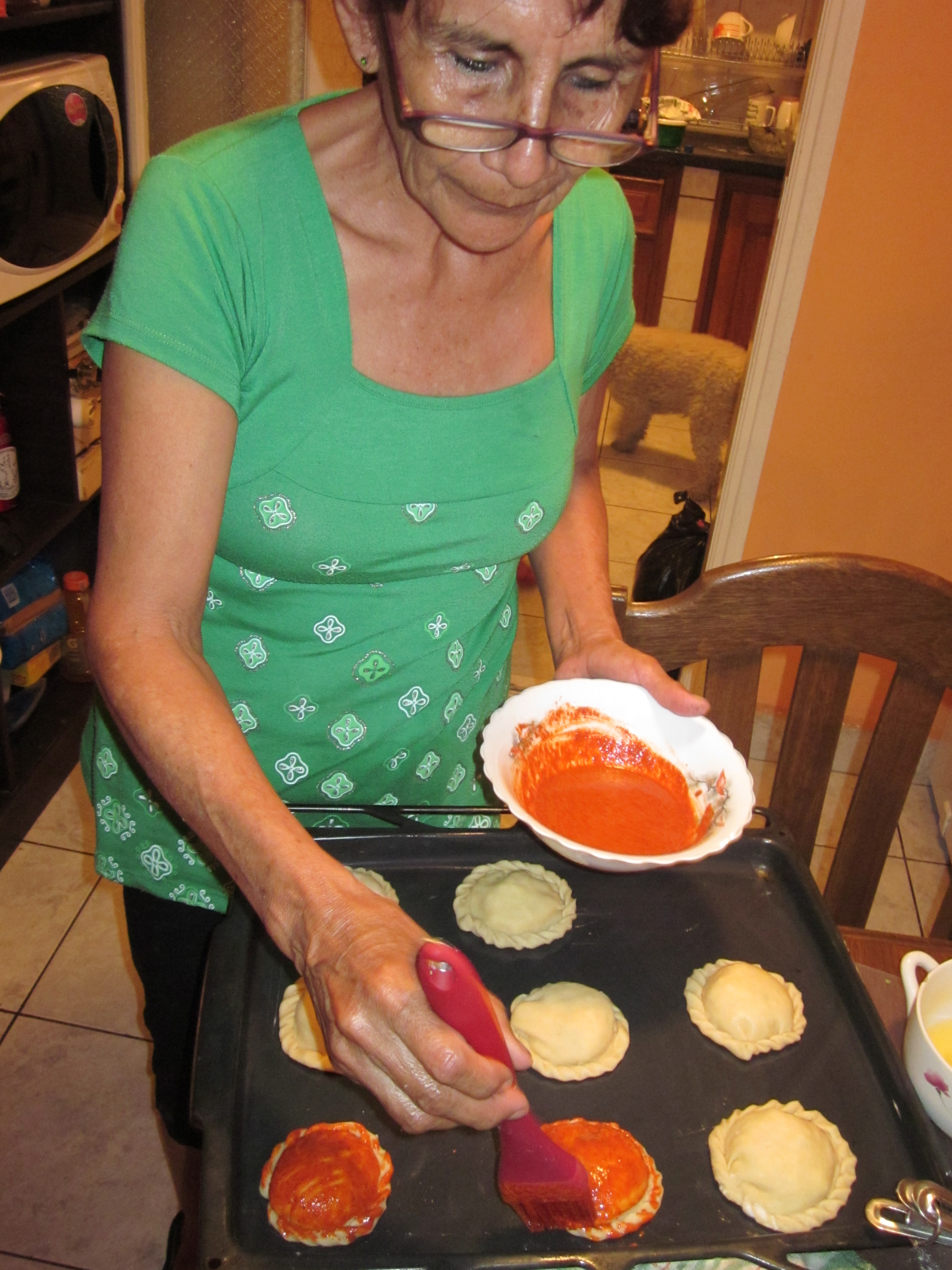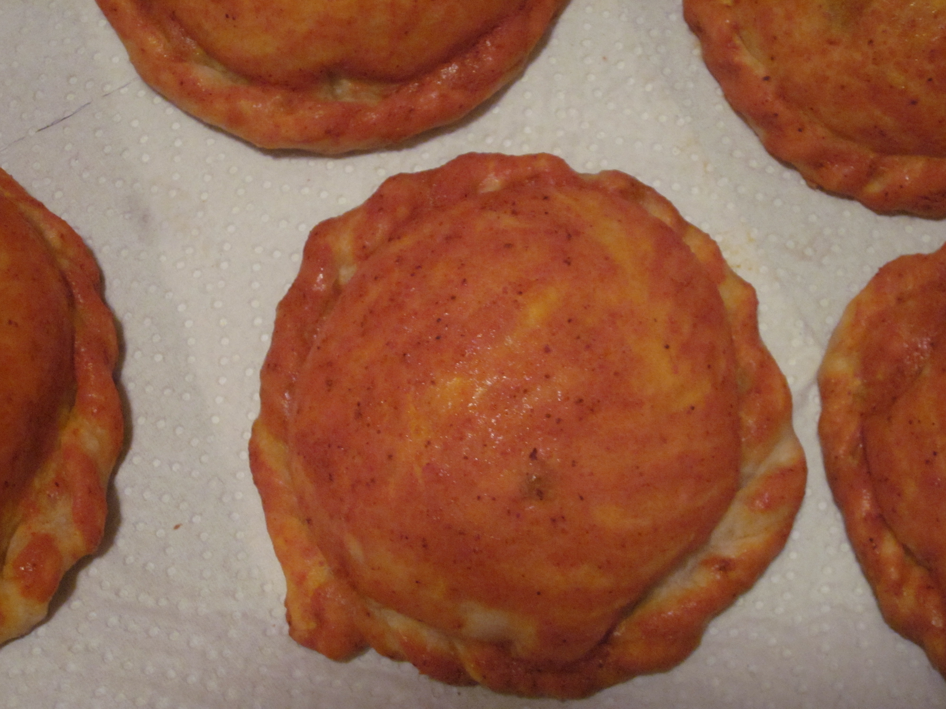 Put the pukacapas on a baking sheet and using a brush, cover with the paprika and yolk mix.