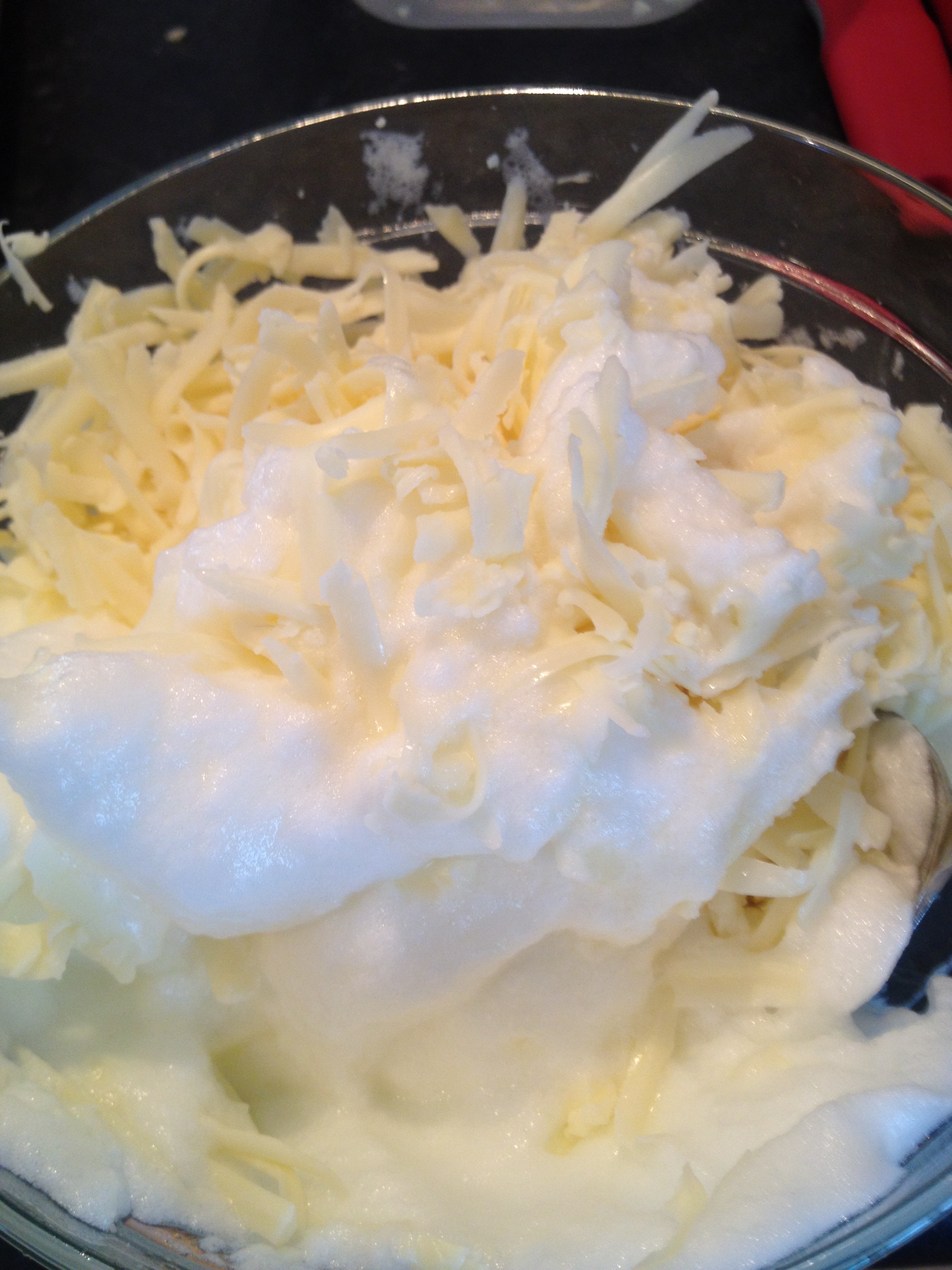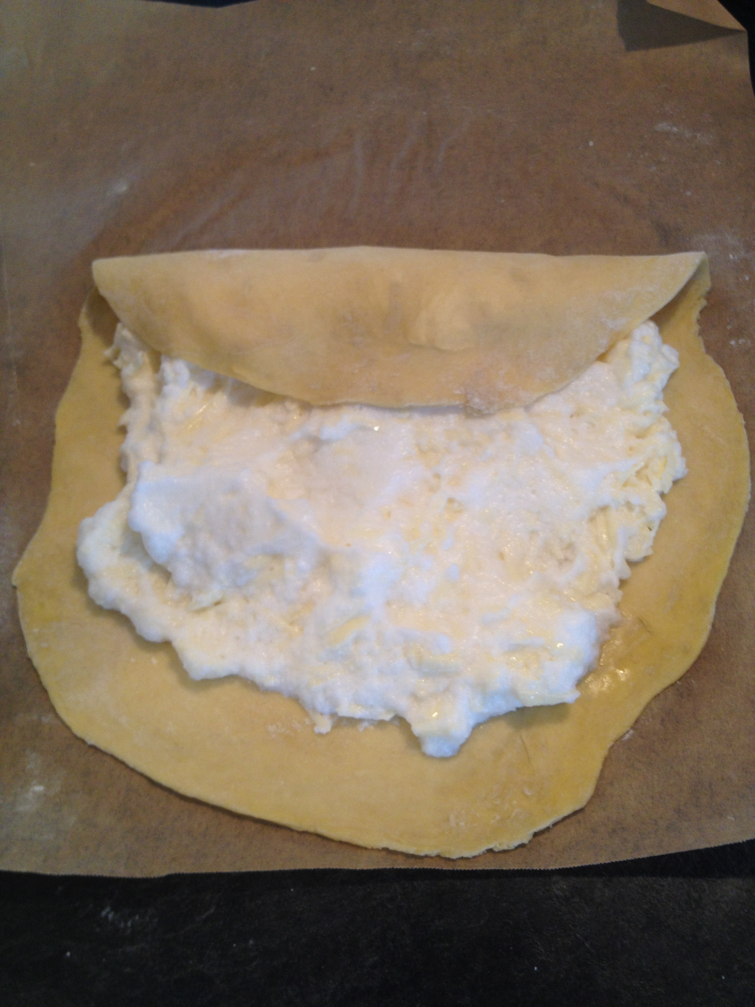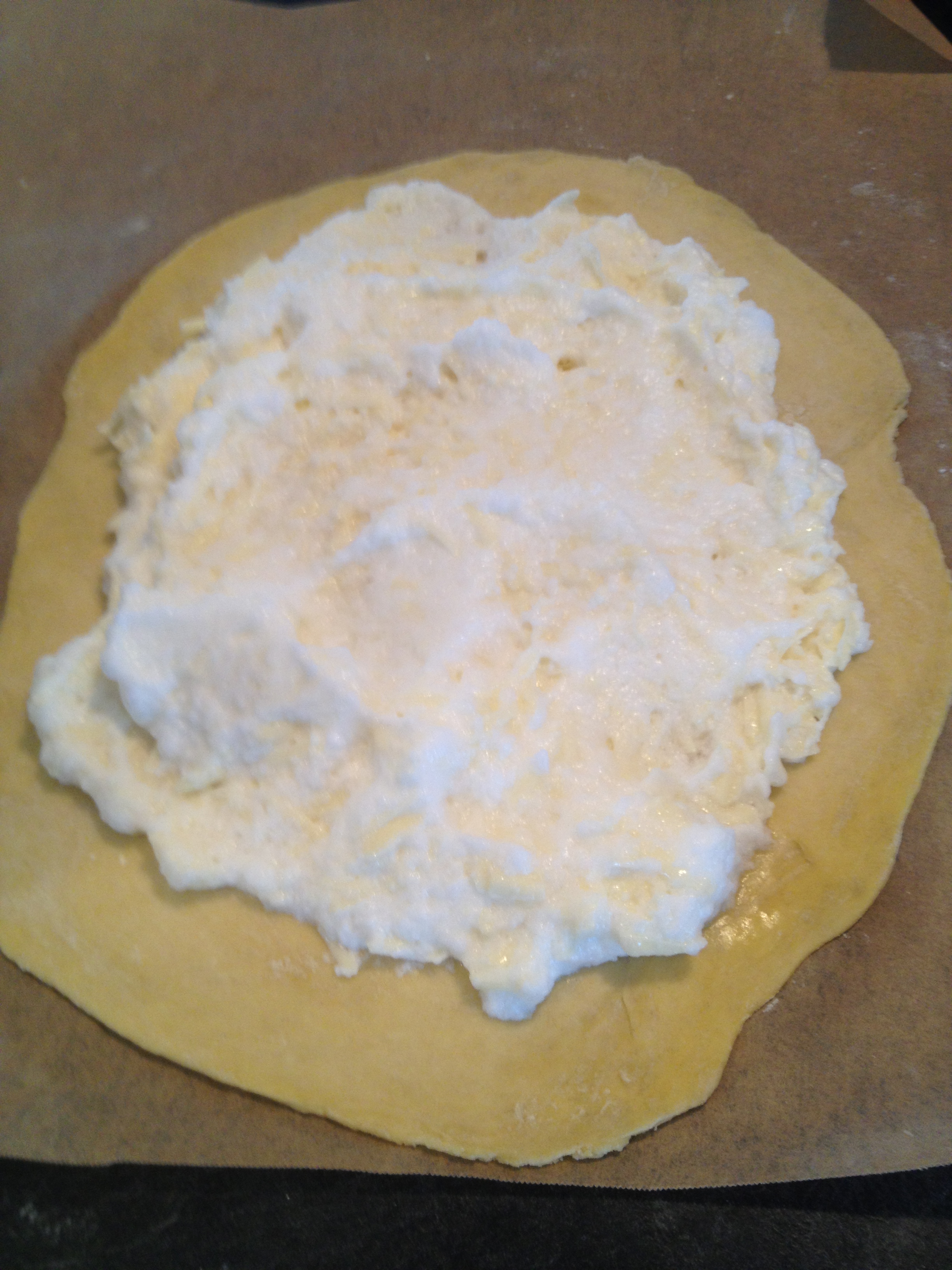 Add half of the egg whites and cheese in the center of the dough.