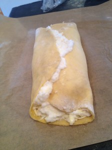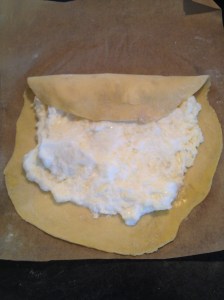 Repeat the same with the other half of the dough and egg cheese mix.