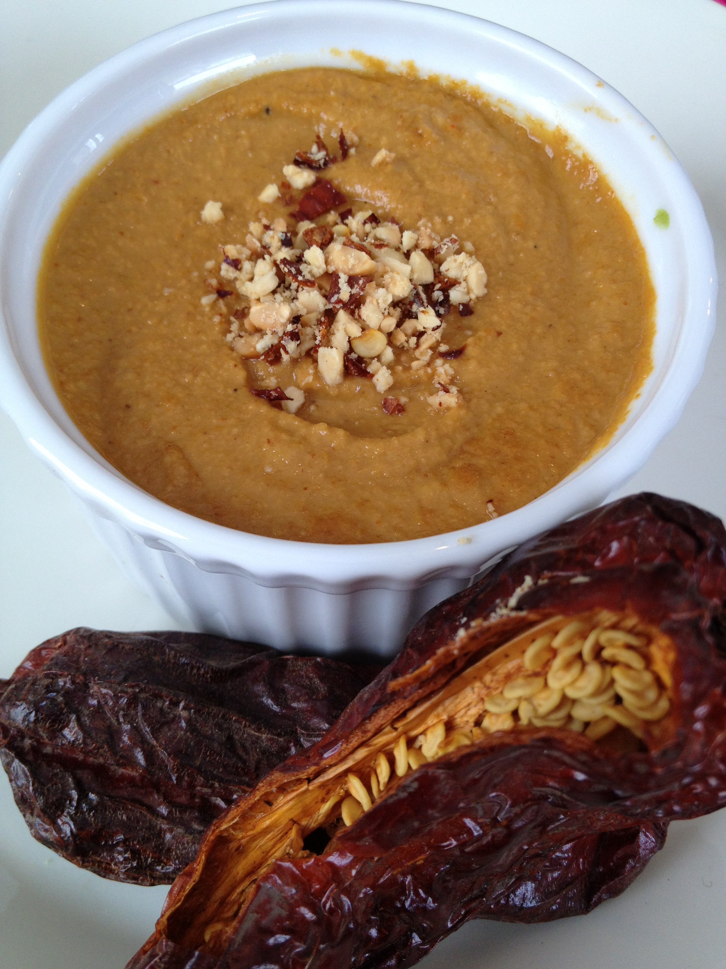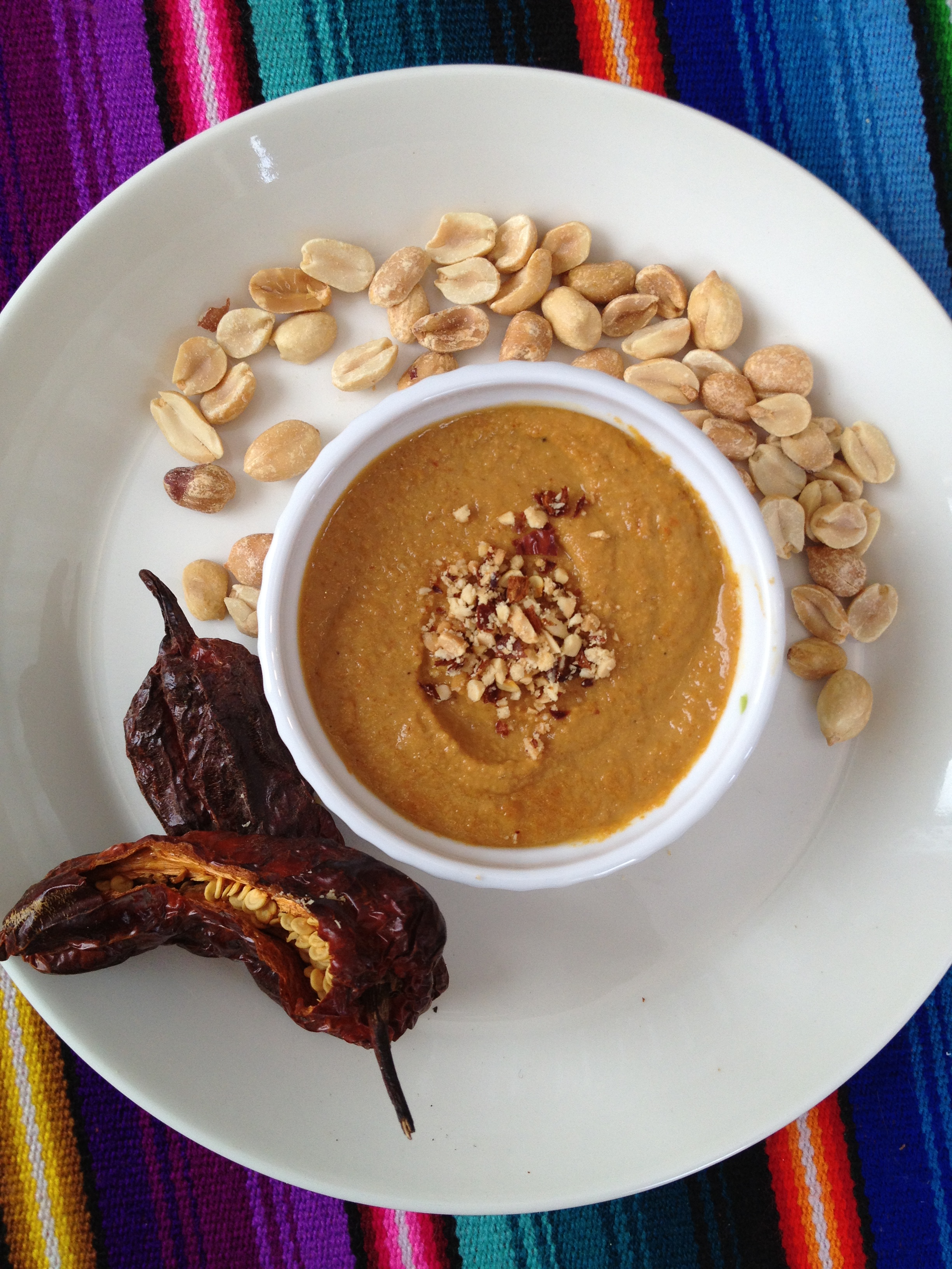 I love llajwas in Bolivia and this peanut sauce is one of my favorites, it goes really well with potatoes, yuca and anticuchos (grilled cow heart-meat on skewers). I tried two different recipes and I love both of them; one has fresh cheese and the other one doesn’t. The first recipe I made was for dish call papas a la huancaina. The second recipe without the cheese we tried on pasta with fresh tomatoes and came out delicious!