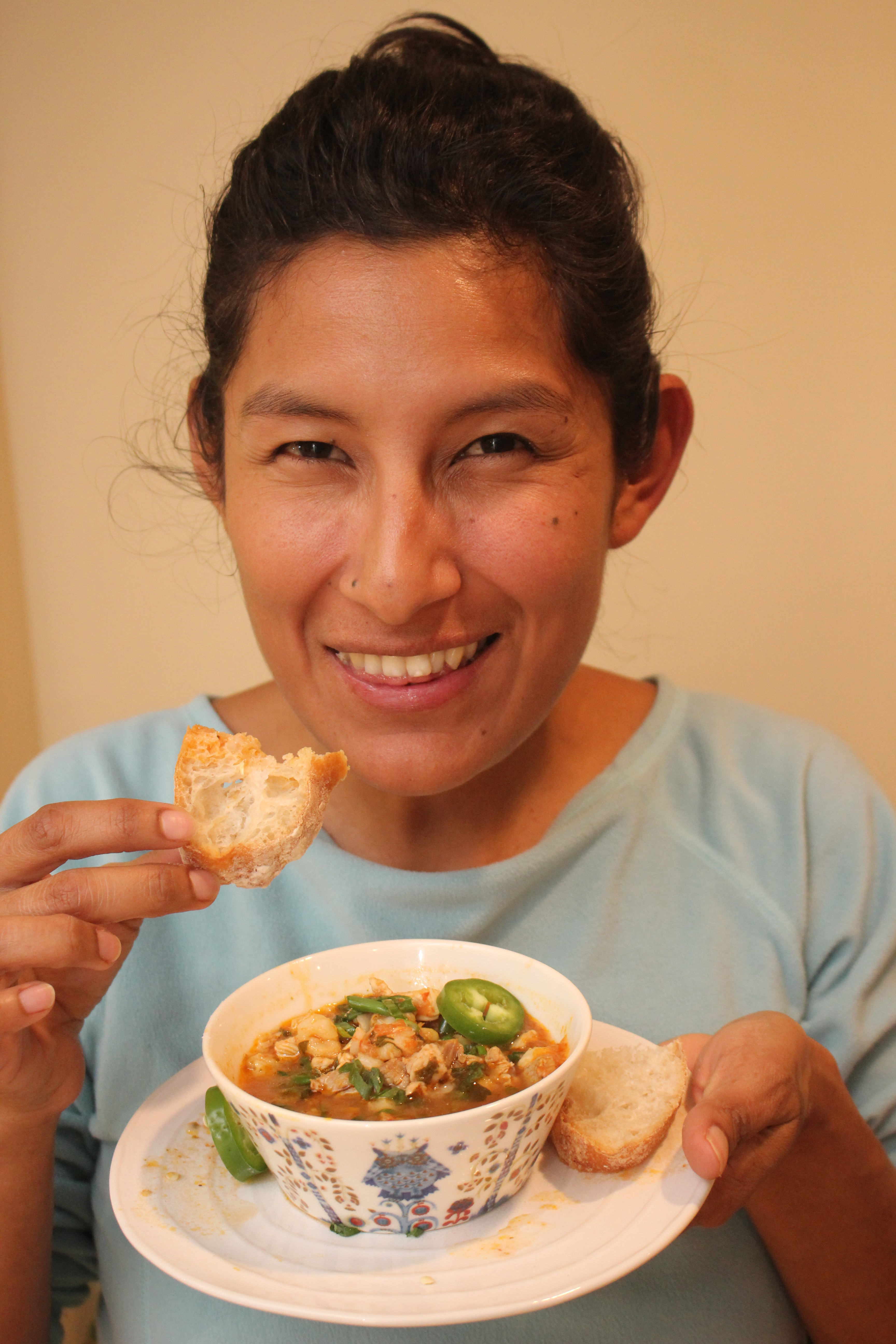 Whenever I was helping my mom in the kitchen making a dish that contained ground beef, she would tell me, “Vas a picar bien menudito la carne.” She never bought ground beef, so we would have to make it in our own way. Whe she said, ‘menudito,’ I knew exactly what she meant: small pieces, really small pieces. I would slice the meat thinly with the knife and then pound the meat with the stone on the batan (grinding stone) and then cut the pounded meat by hand. This process adds amazing flavor to the food.